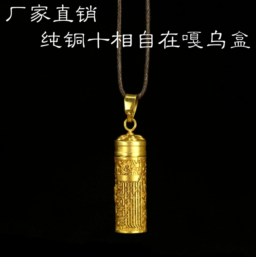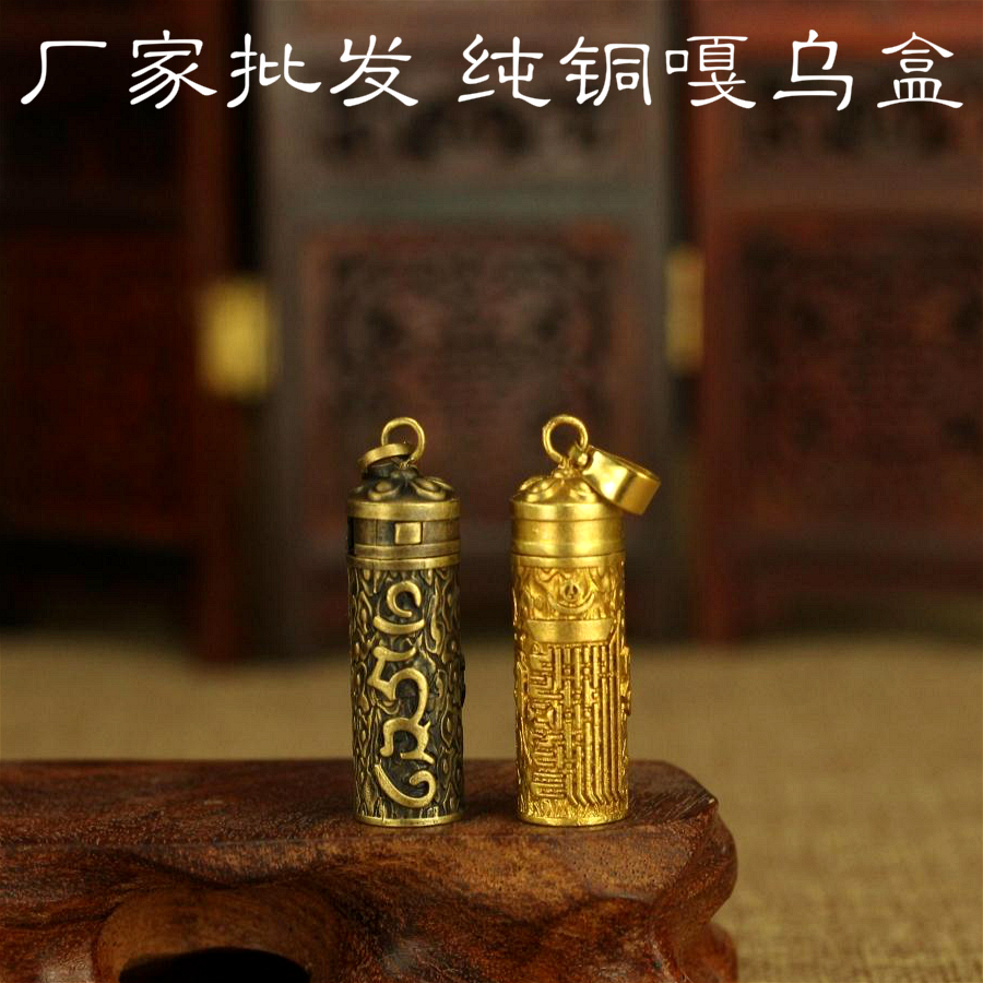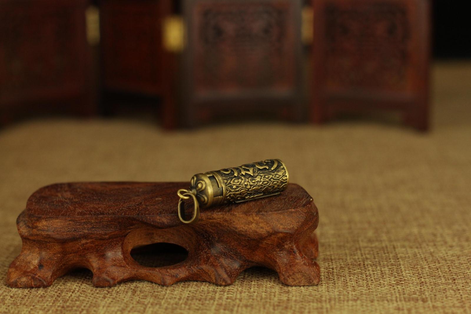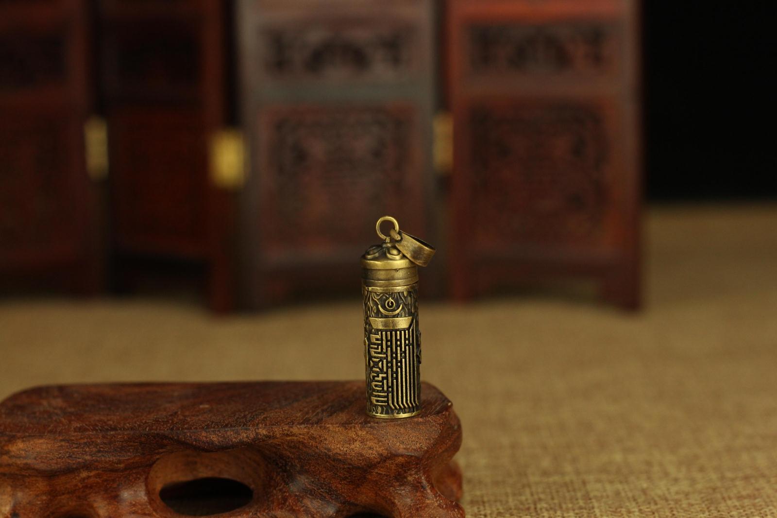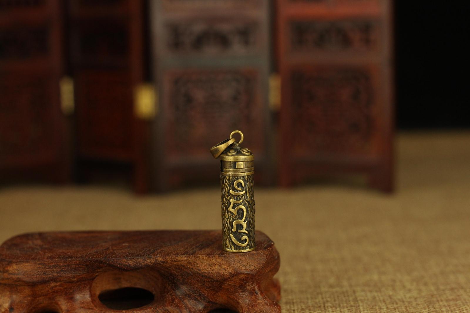 印度尼泊爾民族藏飾—銅質六字真言桶狀長形嘎烏吊墜