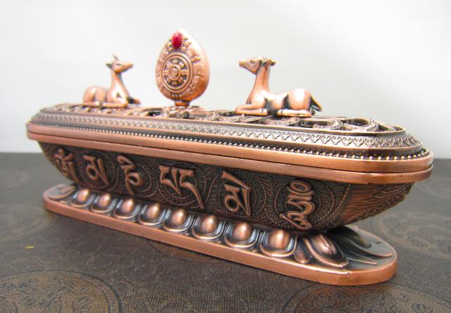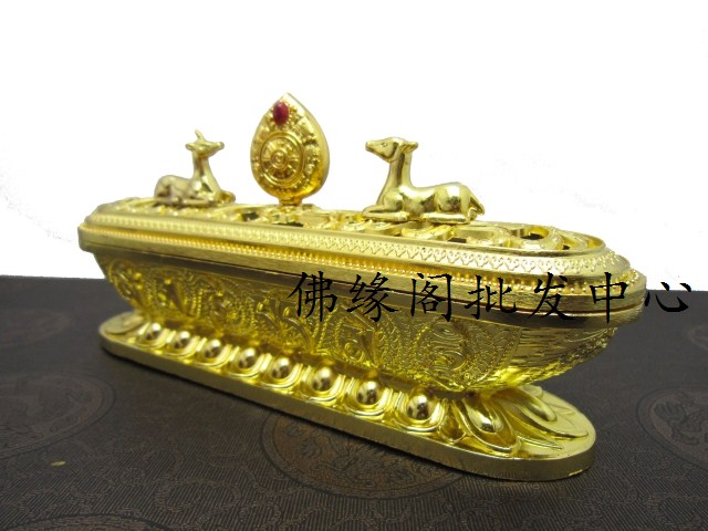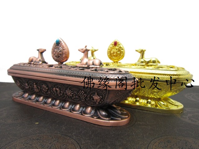 金色三色精工合金臥香爐 八吉祥純銅臥香爐 六字大明咒香爐 銅木香爐
