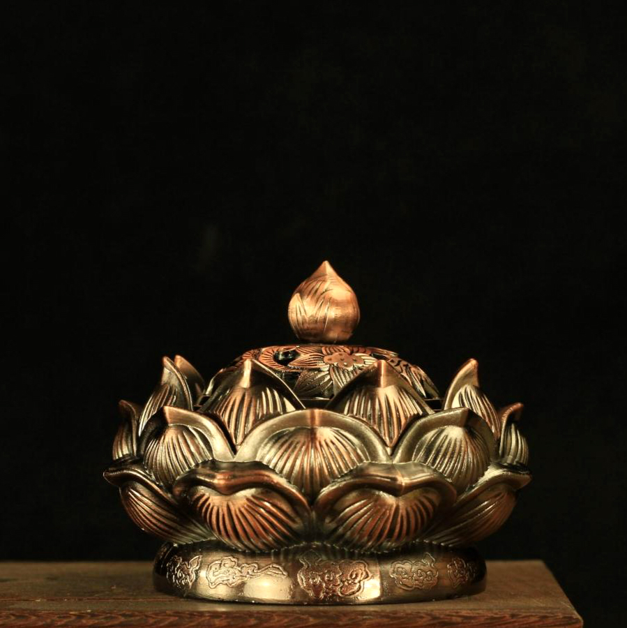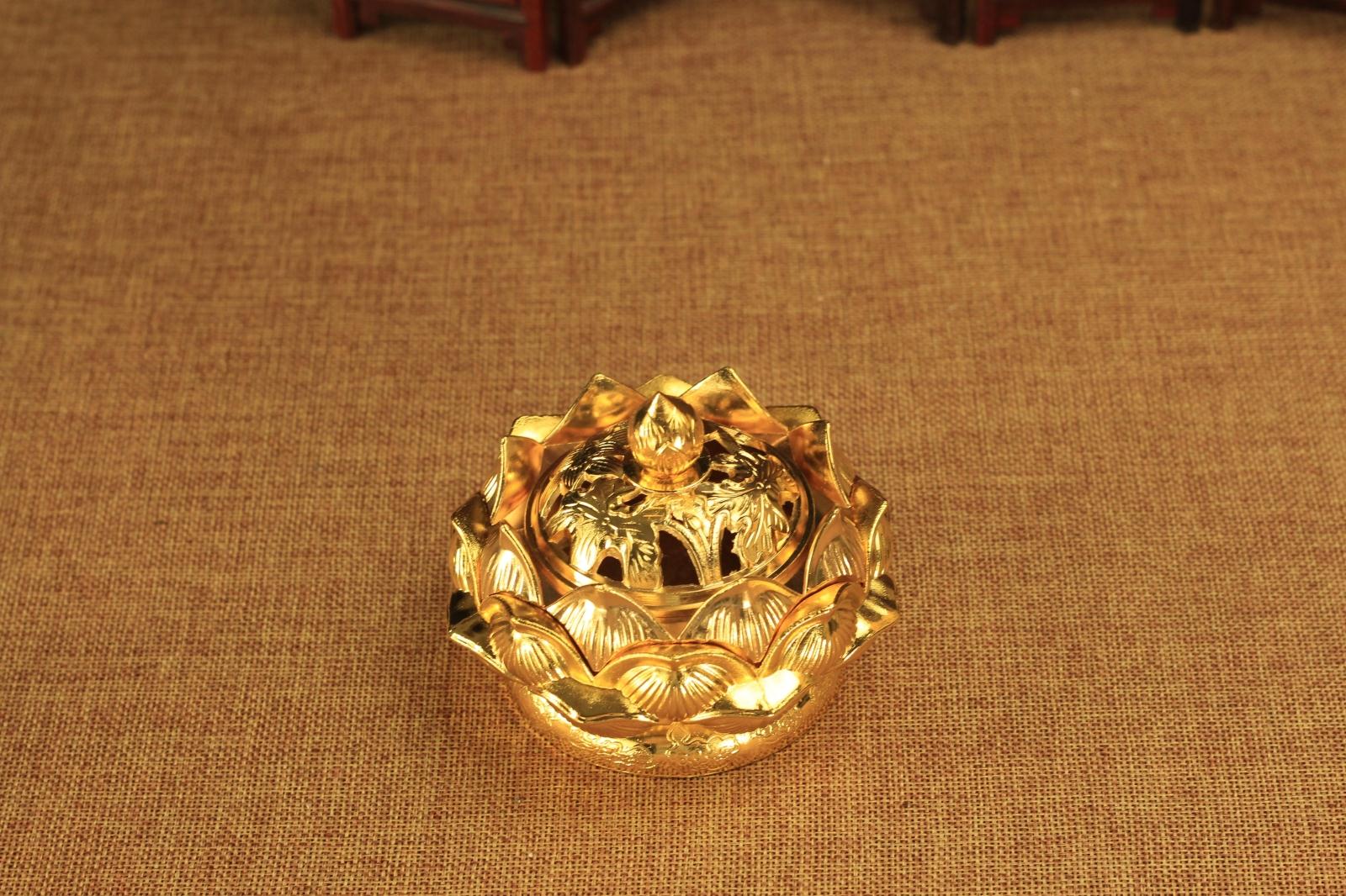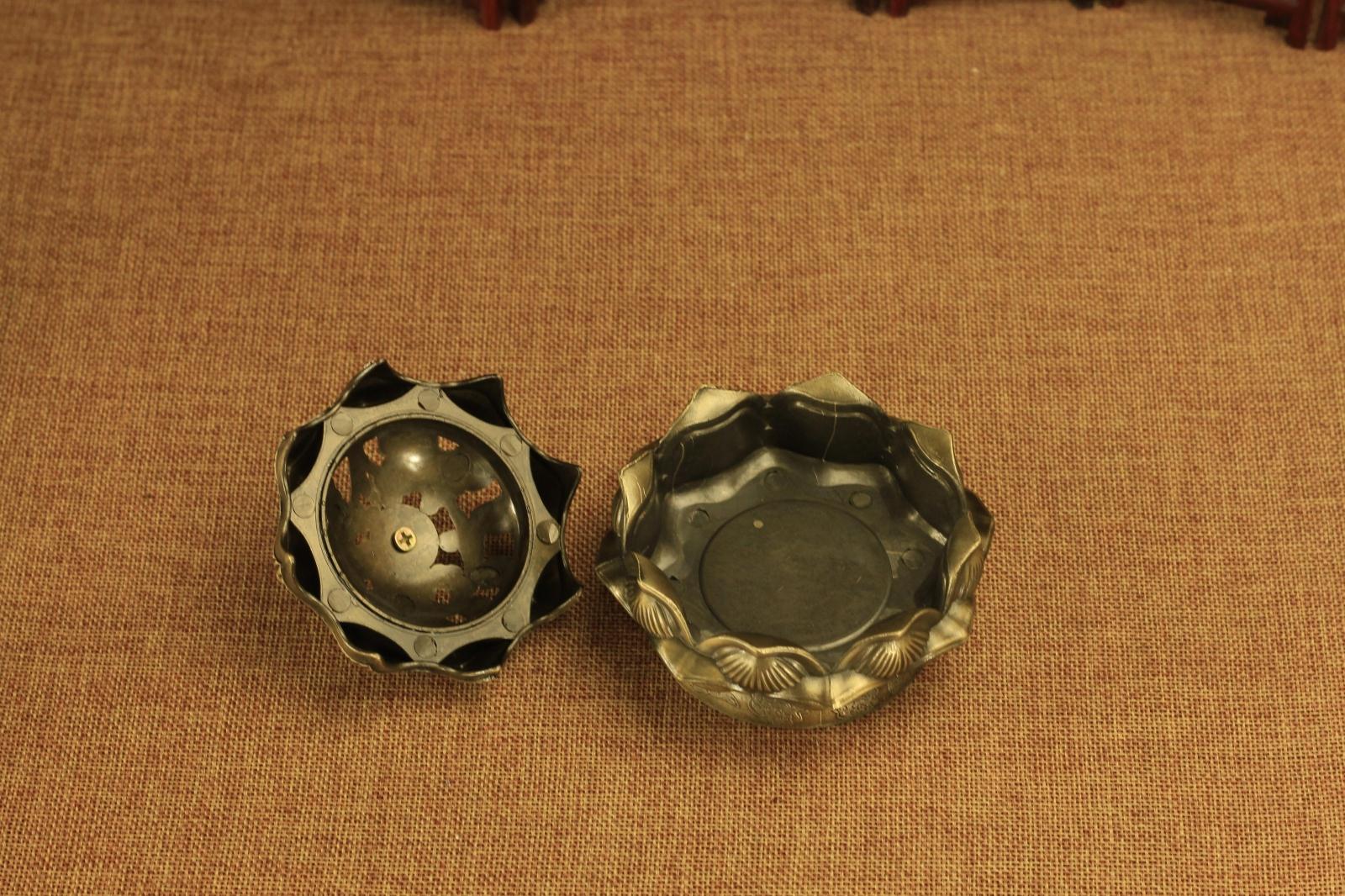 | 本公司大部分商品6一10天到貨。不接急單。急單的客戶請不要下單。感謝諒解與合作! 【名稱】:蓮花香爐 盤香爐 塔香粒 熏香爐 仿古銅 【材質】:合金鍍銅葫蘆香架為黃銅材質 【顏色】青銅、紅銅、金色 【規格】寬10.5cm、高約8cm、內口徑約7.6cm 可以用1-4小時盤香,高度3.5厘米以內的塔香;蓋子打開也可以插線香配的銅葫蘆香架就可以插線香 溫馨提示:任何工藝品都沒有完美的,追求完美者慎拍;買之前請仔細看一下規格介紹,切勿自行想象哦!另這款是合金材質鍍銅的,并不是純銅 另外由于制造批次不同以及拍攝的光線因素以及電腦顯示器的不同,可能會存在細小的不同,比如色差,但不影響美觀和質量; 海外、地區、等地不