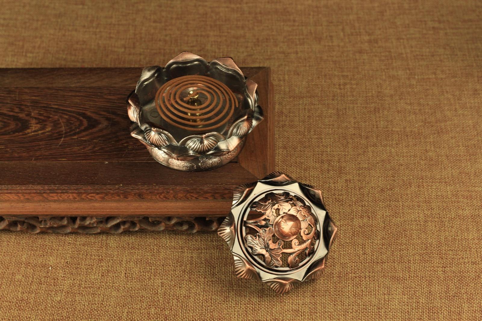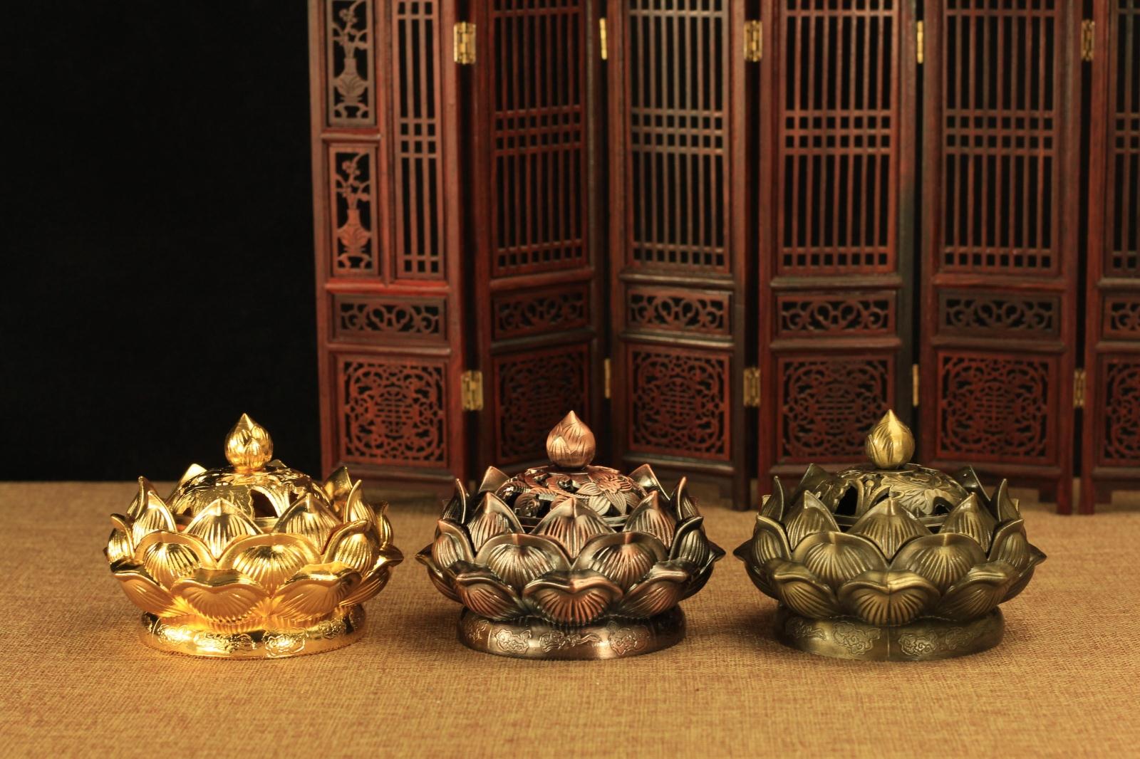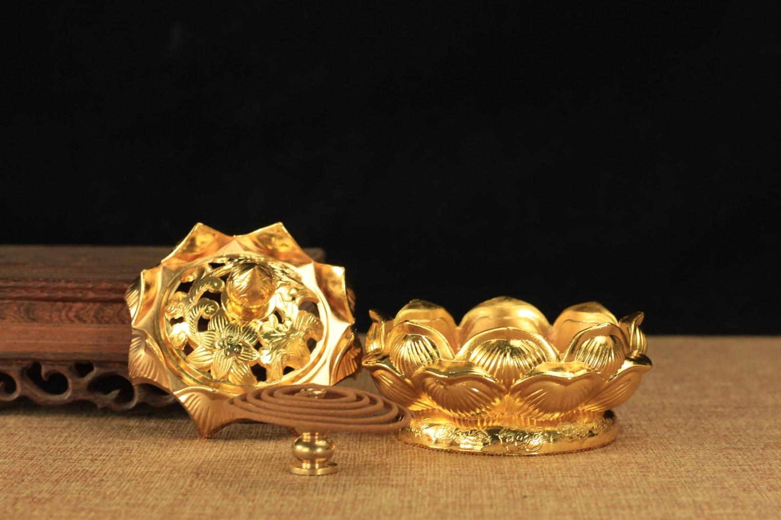 | 本公司大部分商品6一10天到貨。不接急單。急單的客戶請不要下單。感謝諒解與合作! 【名稱】:蓮花香爐 盤香爐 塔香粒 熏香爐 仿古銅 【材質】:合金鍍銅葫蘆香架為黃銅材質 【顏色】青銅、紅銅、金色 【規格】寬10.5cm、高約8cm、內口徑約7.6cm 可以用1-4小時盤香,高度3.5厘米以內的塔香;蓋子打開也可以插線香配的銅葫蘆香架就可以插線香 溫馨提示:任何工藝品都沒有完美的,追求完美者慎拍;買之前請仔細看一下規格介紹,切勿自行想象哦!另這款是合金材質鍍銅的,并不是純銅 另外由于制造批次不同以及拍攝的光線因素以及電腦顯示器的不同,可能會存在細小的不同,比如色差,但不影響美觀和質量; 海外、地區、等地不