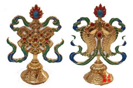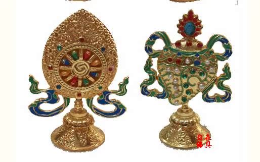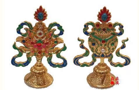 【產品名】4寸新款八吉祥套 【規格】高約:12CM 總寬約是:6.9厘米 【材質】鋅合金電渡 八吉祥八瑞相是佛教符號中最著名的一組,其中包括寶傘、金魚、寶瓶、蓮花、白海螺、吉祥結、勝利幢、金輪,這八大象征物代表著佛陀身體的各個組成部分。 1寶傘:代表頭部。象征著遮蔽魔障,守護佛法即所謂“張施自如,曲復眾生”,象征著佛陀教誨的權威,表示超凡入圣,離苦得樂。 2金魚:代表雙眼。魚,能夠自由自在地游于水中。佛教予以象征超越世間,自由豁達,得解脫的修行者。在,通常以雌雄金魚一對象征解脫的境地,即自由自在的解脫。金魚還可以認為是慧眼的象征,因為魚的眼睛可以透視渾濁的泥水。 3蓮華:代表舌頭。蓮華出污泥而不染的品質,表示佛在輪回中生,且無過患而無垢,清凈自在,圓無礙。具有講、辯、著之功德,如蓮華之品德。藏傳佛教一般認為蓮華象征著最終目標,即修成正果。 4白海螺:代表“語”。佛教中,以釋尊說法,聲聞四方,如海螺之音,故法會之際常吹響海螺。在《大日經》中即有:“汝自于今日,轉于救世輪,其音普周遍,吹無上法螺。”表示弘揚佛法,普渡眾生。在,以右旋白色海螺最為受尊崇,視作名聲遠揚三千世界之象征。 5寶瓶:代表頸。又稱賢瓶、如意瓶、吉祥瓶。佛教將其作為吉祥物,內裝寶石或圣水,表示佛法是一切眾生能解脫苦海的甘露,瓶中插有孔雀或如意樹,象征著吉祥清凈和財運或福智圓。是密宗佛法灌頂時的法器之一,是佛之善法的寶庫,能足眾生的一切愿望。 6勝利幢:代表“身”。又稱尊勝幢。佛教用來代表解脫煩惱,得到覺悟的象征,即佛陀以智慧之幢,抵棄一切煩惱之魔軍,以幢象征摧破之義,藏傳佛教,用以比喻一種煩惱對治力;戒、定、慧、解脫、大悲、空無相無愿,方便,無我,悟緣起,離偏見,受佛之加持得自心自性清凈,象征著修成正果的勝利。 7金輪寶:代表雙足。象征著佛陀教義的傳播,釋迦牟尼成就正覺,破除無明煩惱,斷除輪回,放正義知識之光輝,故佛之說法,稱為轉金輪。以輪比喻佛法,其意有三,即摧破、碾轉、圓之意。 8吉祥結:代表“意”。又稱吉祥網,無限之紐,在印度被視作吉祥的象征,其組織成盤曲沒有開頭和結尾的圖案,表示佛法回環貫激,一切生存的海洋中打撈起智慧珍珠和覺悟珠寶。 此八吉祥在佛教中象征八大菩薩、八吉祥女和八大護法。供奉此款于佛堂,將福慧圓,功德無量。 |