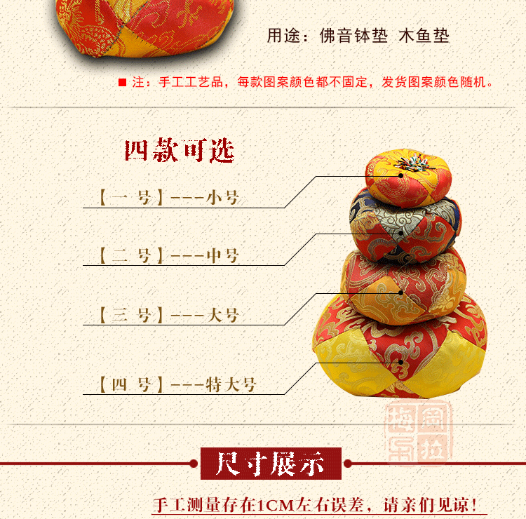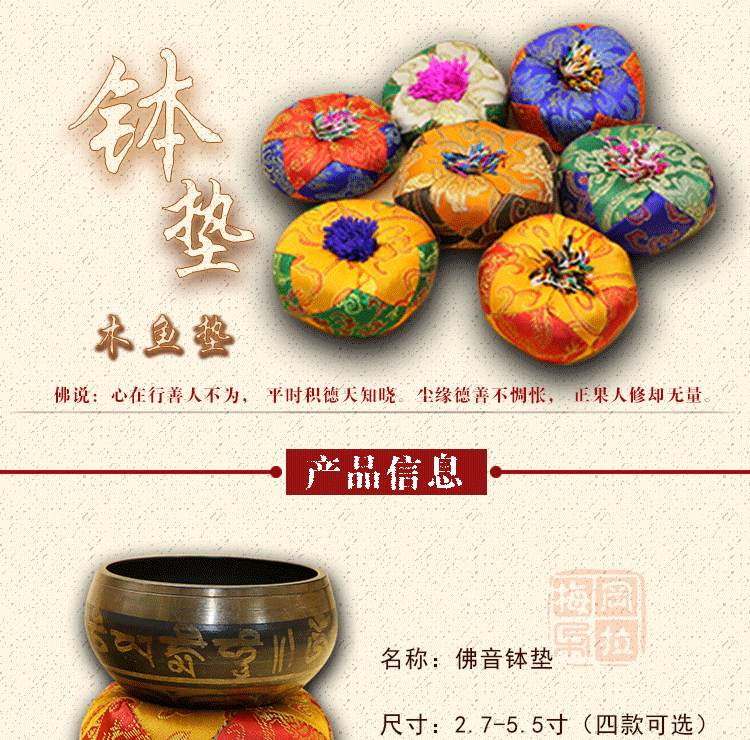 中號【款式二】佛堂家居擺件尼泊爾手工刺繡錦布佛音缽墊子頌缽銅銅馨底座木魚墊
