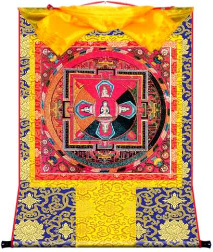 因是佛教圣相,所以我們選用的裝裱材料均是現在能有的最好的裝裱材料,正面選用定制的高檔棉織金絲錦緞很多仿制的是化纖材料,織繡藏傳佛教的富貴蓮花圖案,背面使用加厚仿真絲黃色綢緞布,手工精細裝裱而成,帶掛軸,照面,可直接懸掛到墻上。