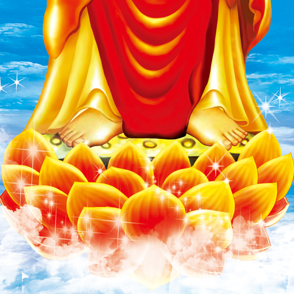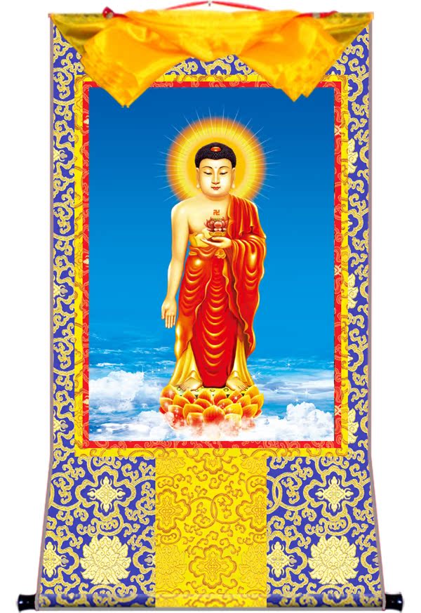 因是佛教圣相,所以我們選用的裝裱材料均是現在能有的最好的裝裱材料,正面選用定制的高檔棉織金絲錦緞很多仿制的是化纖材料,織繡藏傳佛教的富貴蓮花圖案,背面使用加厚仿真絲黃色綢緞布,手工精細裝裱而成,帶掛軸,照面,可直接懸掛到墻上。
