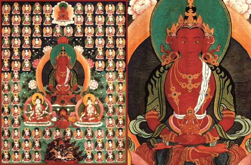 訂做精品0.8m/御用錦緞/無量壽佛尊勝佛母白度母/A款長壽三尊唐卡