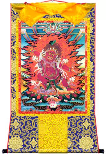 因是佛教圣相,所以我們選用的裝裱材料均是現在能有的最好的裝裱材料,正面選用定制的高檔棉織金絲錦緞很多仿制的是化纖材料,織繡藏傳佛教的富貴蓮花圖案,背面使用加厚仿真絲黃色綢緞布,手工精細裝裱而成,帶掛軸,照面,可直接懸掛到墻上。