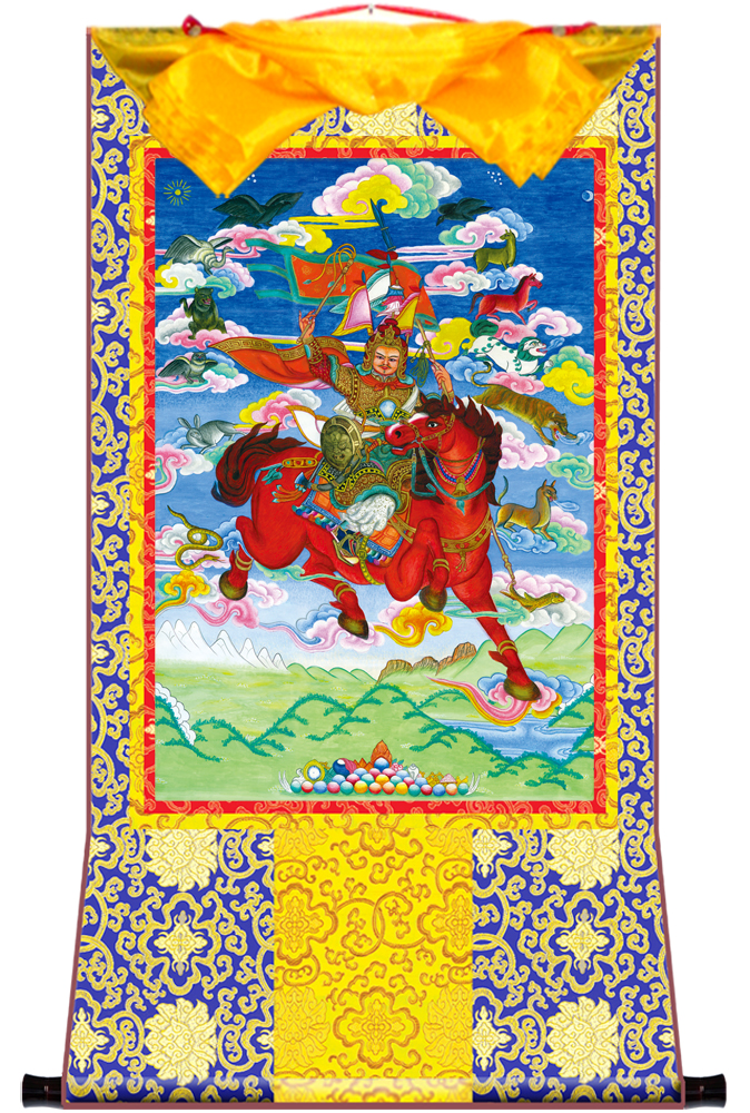 因是佛教圣相,所以我們選用的裝裱材料均是現在能有的最好的裝裱材料,正面選用定制的高檔棉織金絲錦緞很多仿制的是化纖材料,織繡藏傳佛教的富貴蓮花圖案,背面使用加厚仿真絲黃色綢緞布,手工精細裝裱而成,帶掛軸,照面,可直接懸掛到墻上。