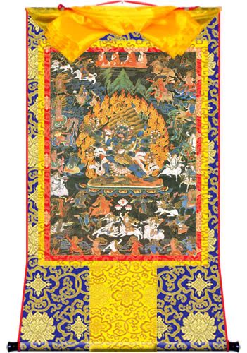 訂做如意惺特價/清御用錦緞精品佛像/Q款噶瑪黑魯嘎普巴金剛唐卡