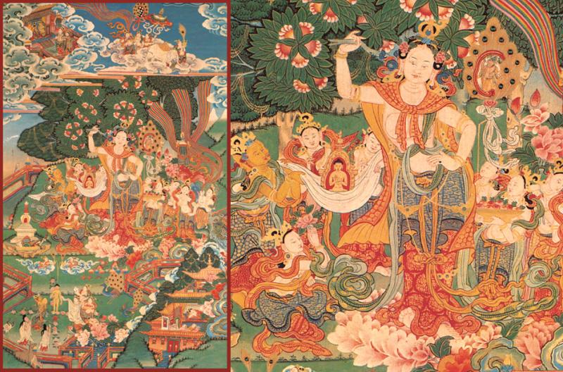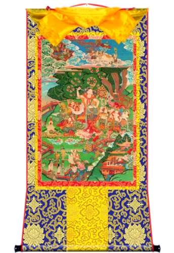 因是佛教圣相,所以我們選用的裝裱材料均是現在能有的最好的裝裱材料,正面選用定制的高檔棉織金絲錦緞很多仿制的是化纖材料,織繡藏傳佛教的富貴蓮花圖案,背面使用加厚仿真絲黃色綢緞布,手工精細裝裱而成,帶掛軸,照面,可直接懸掛到墻上。
