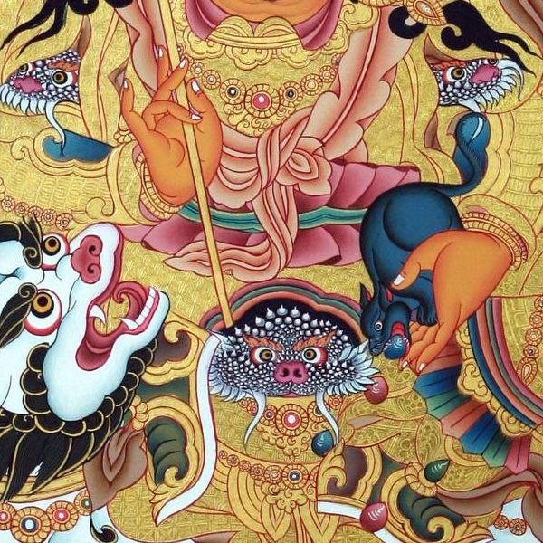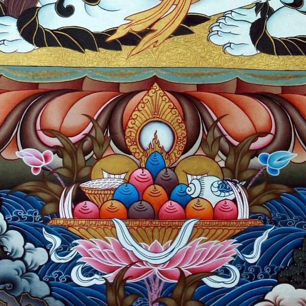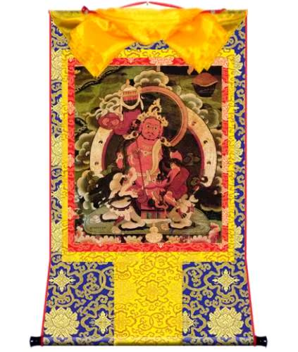 因是佛教圣相,所以我們選用的裝裱材料均是現在能有的最好的裝裱材料,正面選用定制的高檔棉織金絲錦緞很多仿制的是化纖材料,織繡藏傳佛教的富貴蓮花圖案,背面使用加厚仿真絲黃色綢緞布,手工精細裝裱而成,帶掛軸,照面,可直接懸掛到墻上。