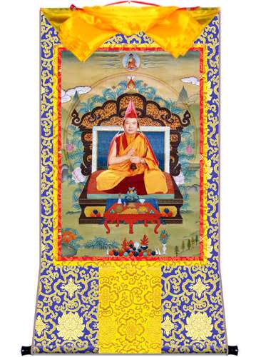 因是佛教圣相,所以我們選用的裝裱材料均是現在能有的最好的裝裱材料,正面選用定制的高檔棉織金絲錦緞很多仿制的是化纖材料,織繡藏傳佛教的富貴蓮花圖案,背面使用加厚仿真絲黃色綢緞布,手工精細裝裱而成,帶掛軸,照面,可直接懸掛到墻上。