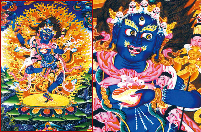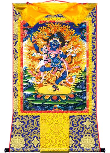 因是佛教圣相,所以我們選用的裝裱材料均是現在能有的最好的裝裱材料,正面選用定制的高檔棉織金絲錦緞很多仿制的是化纖材料,織繡藏傳佛教的富貴蓮花圖案,背面使用加厚仿真絲黃色綢緞布,手工精細裝裱而成,帶掛軸,照面,可直接懸掛到墻上。