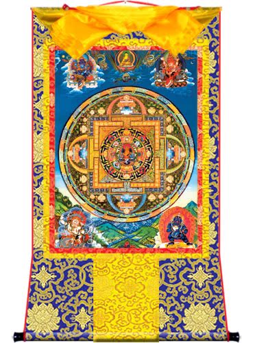 因是佛教圣相,所以我們選用的裝裱材料均是現在能有的最好的裝裱材料,正面選用定制的高檔棉織金絲錦緞很多仿制的是化纖材料,織繡藏傳佛教的富貴蓮花圖案,背面使用加厚仿真絲黃色綢緞布,手工精細裝裱而成,帶掛軸,照面,可直接懸掛到墻上。