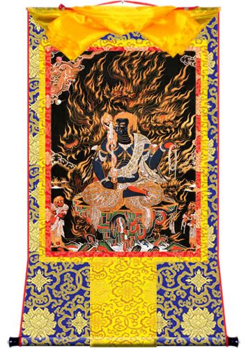 因是佛教圣相,所以我們選用的裝裱材料均是現在能有的最好的裝裱材料,正面選用定制的高檔棉織金絲錦緞很多仿制的是化纖材料,織繡藏傳佛教的富貴蓮花圖案,背面使用加厚仿真絲黃色綢緞布,手工精細裝裱而成,帶掛軸,照面,可直接懸掛到墻上。