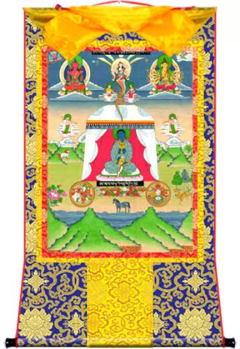 因是佛教圣相,所以我們選用的裝裱材料均是現在能有的最好的裝裱材料,正面選用定制的高檔棉織金絲錦緞很多仿制的是化纖材料,織繡藏傳佛教的富貴蓮花圖案,背面使用加厚仿真絲黃色綢緞布,手工精細裝裱而成,帶掛軸,照面,可直接懸掛到墻上。
