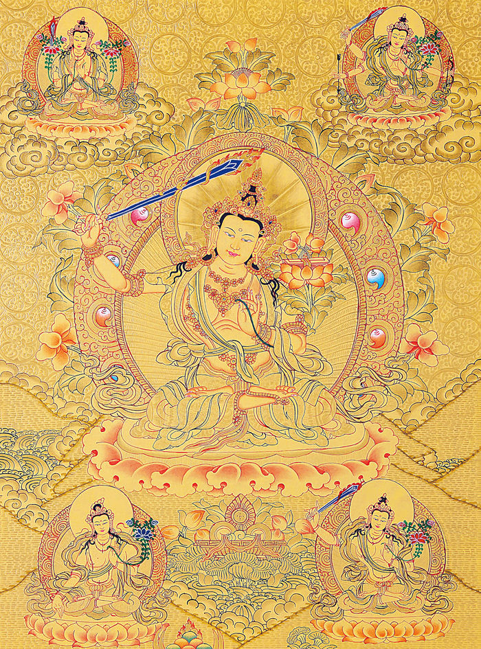 | 本公司大部分商品6一10天到貨。不接急單。急單的客戶請不要下單。感謝諒解與合作! 訂做如意惺特價/清御用錦緞精品佛像/B型文殊菩薩唐卡五姓文殊 訂做唐卡需要10天的貨期,付款后10天左右,如果特別趕的師兄請慎重拍!我們首先要保證質量才能!敬請諒解! 細節圖片展示