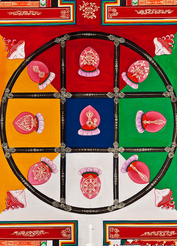唐卡的裝裱款式有很多種,我們選用了最為傳統的一種,這種裝裱方式多為寺廟使用,代表的意義也很殊勝。