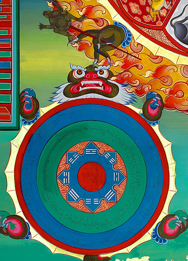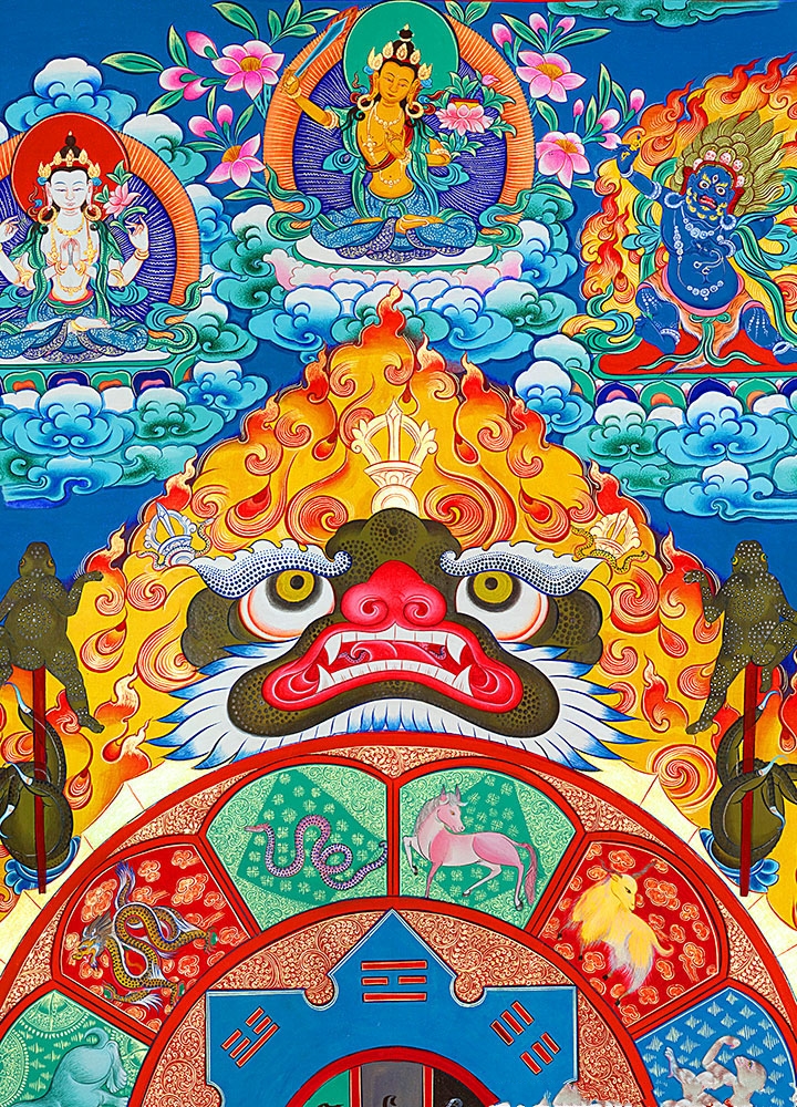 因是佛教圣相,所以我們選用的裝裱材料均是現在能有的最好的裝裱材料,正面選用定制的高檔棉織金絲錦緞很多仿制的是化纖材料,織繡藏傳佛教的富貴蓮花圖案,背面使用加厚仿真絲黃色綢緞布,手工精細裝裱而成,帶掛軸,照面,可直接懸掛到墻上。