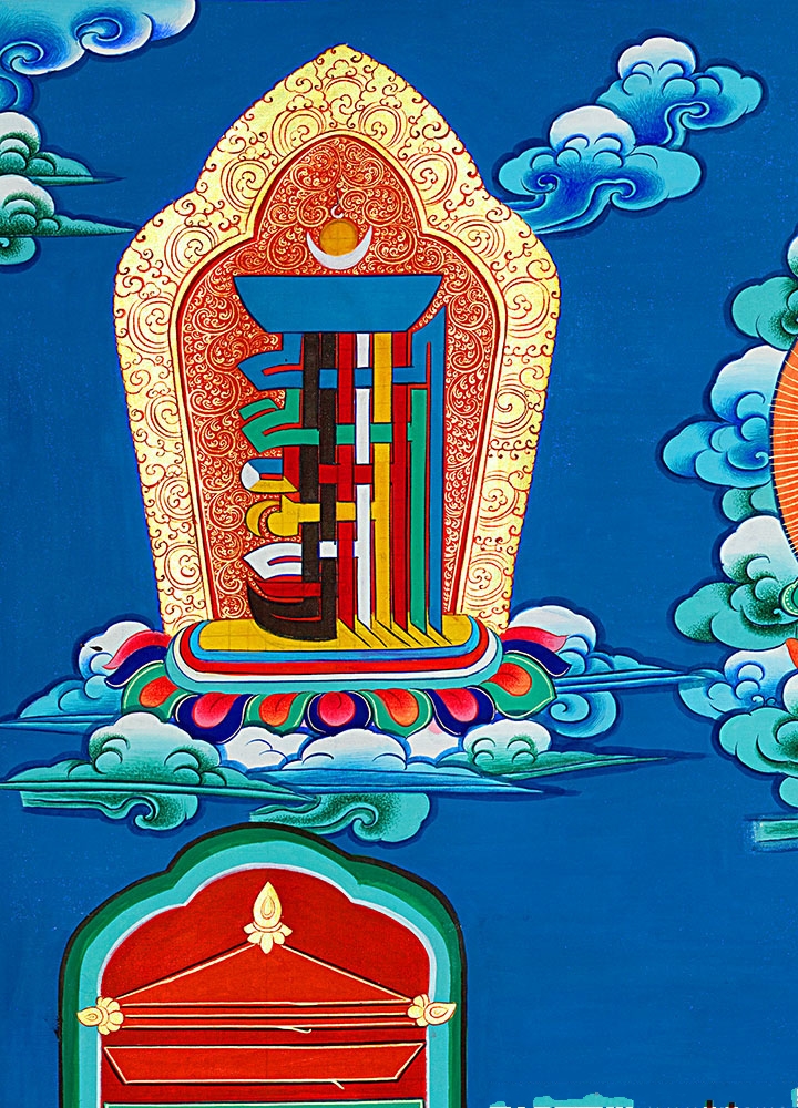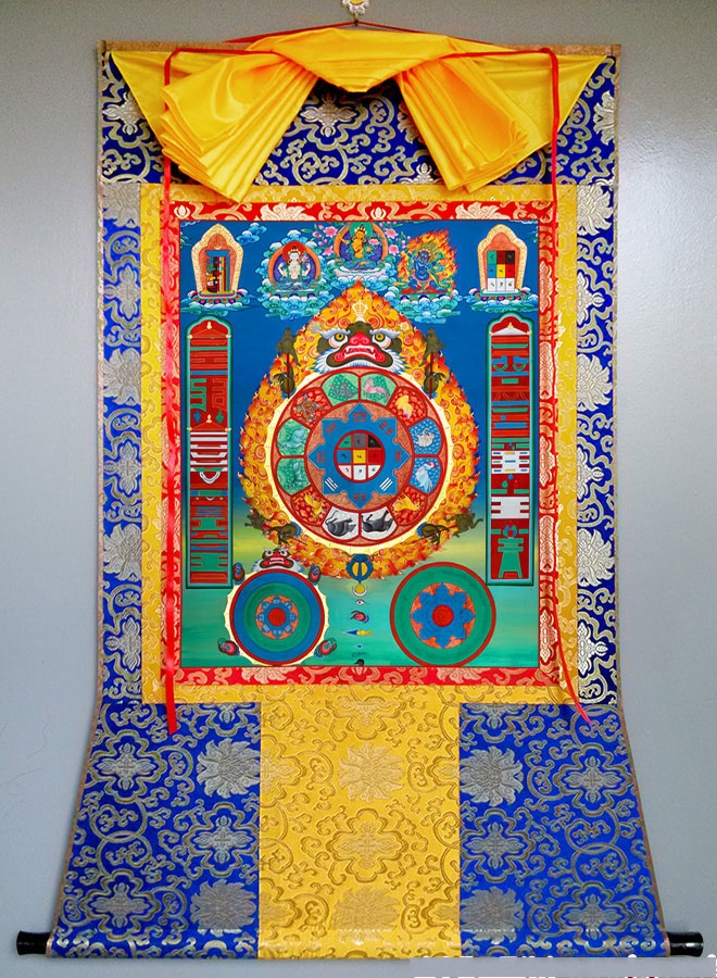 唐卡的裝裱款式有很多種,我們選用了最為傳統的一種,這種裝裱方式多為寺廟使用,代表的意義也很殊勝。