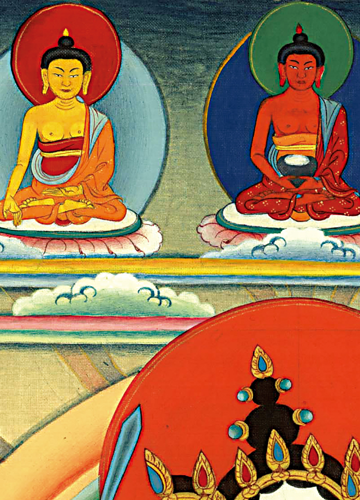 唐卡的裝裱款式有很多種,我們選用了最為傳統的一種,這種裝裱方式多為寺廟使用,代表的意義也很殊勝。