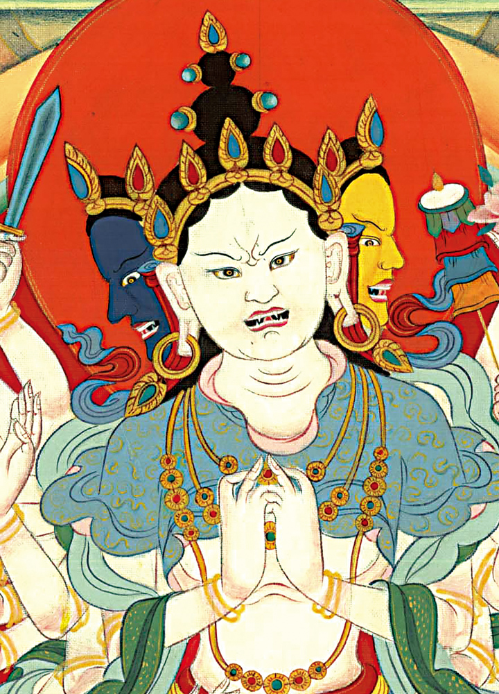 因是佛教圣相,所以我們選用的裝裱材料均是現在能有的最好的裝裱材料,正面選用定制的高檔棉織金絲錦緞很多仿制的是化纖材料,織繡藏傳佛教的富貴蓮花圖案,背面使用加厚仿真絲黃色綢緞布,手工精細裝裱而成,帶掛軸,照面,可直接懸掛到墻上。