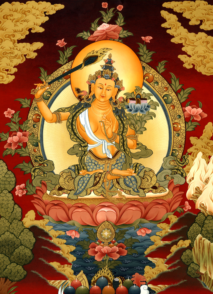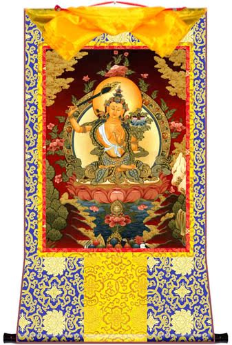 訂做如意惺特價/清御用錦緞精品佛像/助學業考運H型文殊菩薩唐卡