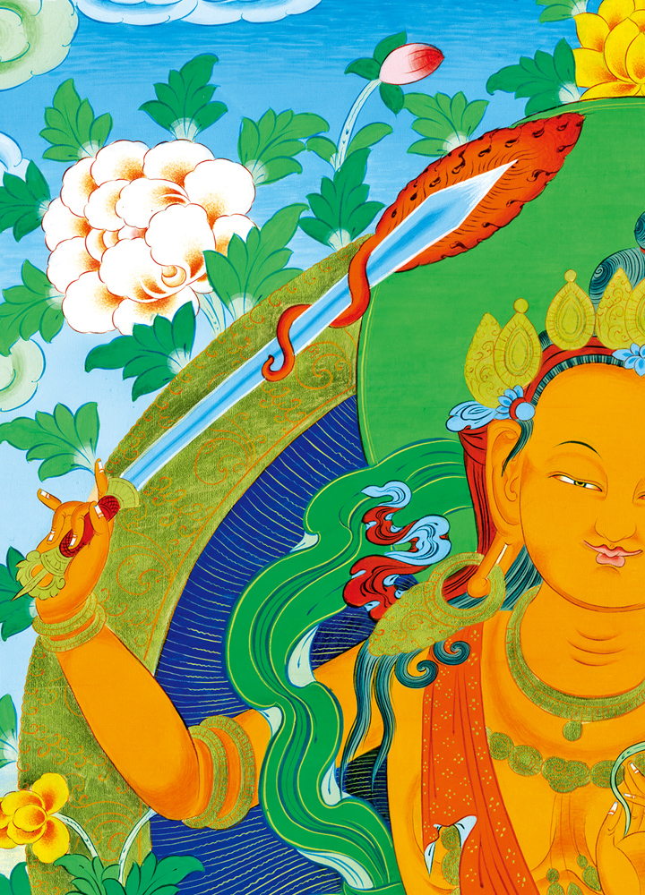 因是佛教圣相,所以我們選用的裝裱材料均是現在能有的最好的裝裱材料,正面選用定制的高檔棉織金絲錦緞很多仿制的是化纖材料,織繡藏傳佛教的富貴蓮花圖案,背面使用加厚仿真絲黃色綢緞布,手工精細裝裱而成,帶掛軸,照面,可直接懸掛到墻上。
