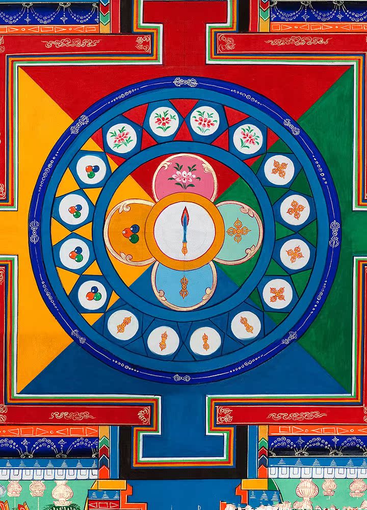 唐卡的裝裱款式有很多種,我們選用了最為傳統的一種,這種裝裱方式多為寺廟使用,代表的意義也很殊勝。