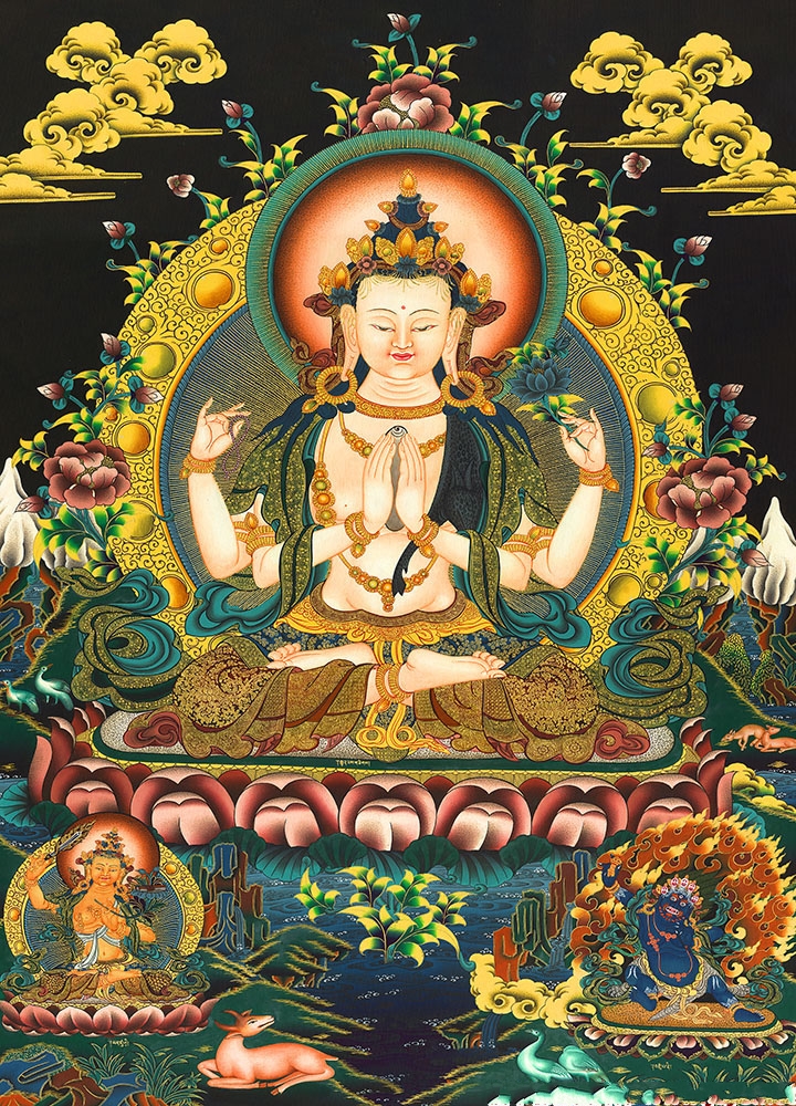 | 本公司大部分商品6一10天到貨。不接急單。急單的客戶請不要下單。感謝諒解與合作! 訂做如意惺特價/清御用錦緞精品佛像/C款三怙主四臂觀音菩薩唐卡 訂做唐卡需要10天的貨期,付款后10天左右,如果特別趕的師兄請慎重拍!我們首先要保證質量才能!敬請諒解! 細節圖片展示