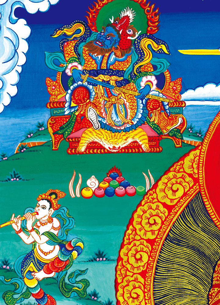 唐卡的裝裱款式有很多種,我們選用了最為傳統的一種,這種裝裱方式多為寺廟使用,代表的意義也很殊勝。