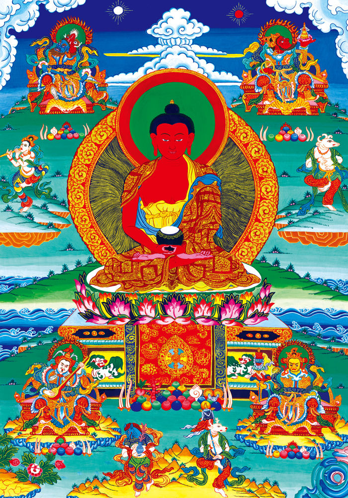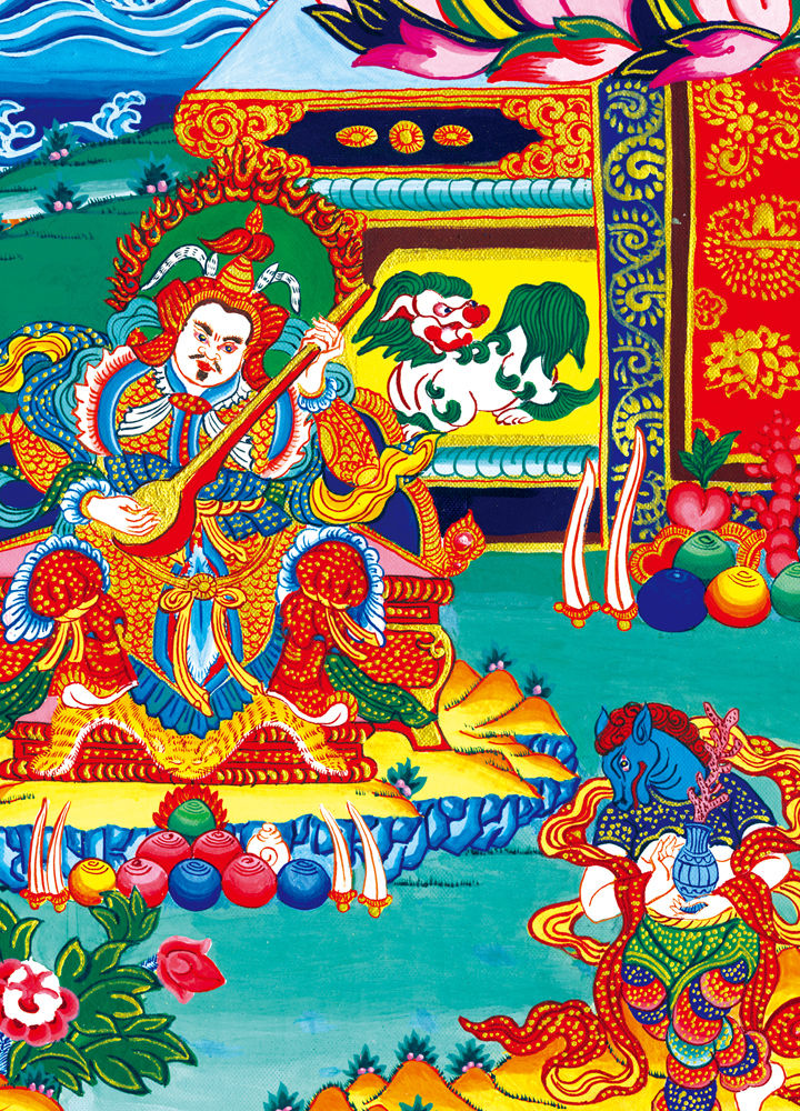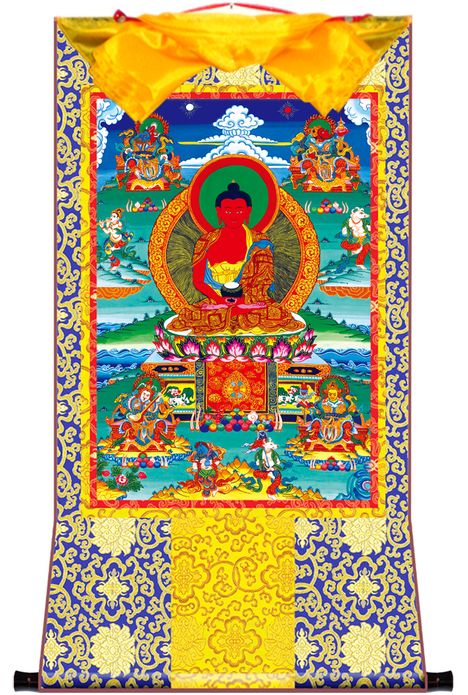 因是佛教圣相,所以我們選用的裝裱材料均是現在能有的最好的裝裱材料,正面選用定制的高檔棉織金絲錦緞很多仿制的是化纖材料,織繡藏傳佛教的富貴蓮花圖案,背面使用加厚仿真絲黃色綢緞布,手工精細裝裱而成,帶掛軸,照面,可直接懸掛到墻上。