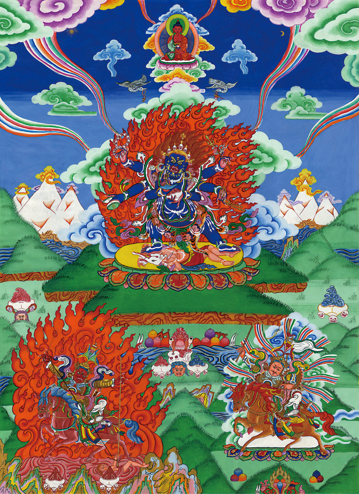因是佛教圣相,所以我們選用的裝裱材料均是現在能有的最好的裝裱材料,正面選用定制的高檔棉織金絲錦緞很多仿制的是化纖材料,織繡藏傳佛教的富貴蓮花圖案,背面使用加厚仿真絲黃色綢緞布,手工精細裝裱而成,帶掛軸,照面,可直接懸掛到墻上。