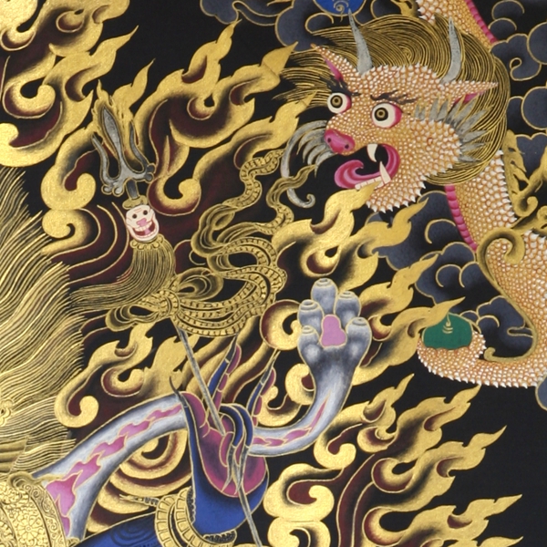 唐卡的裝裱款式有很多種,我們選用了最為傳統的一種,這種裝裱方式多為寺廟使用,代表的意義也很殊勝。