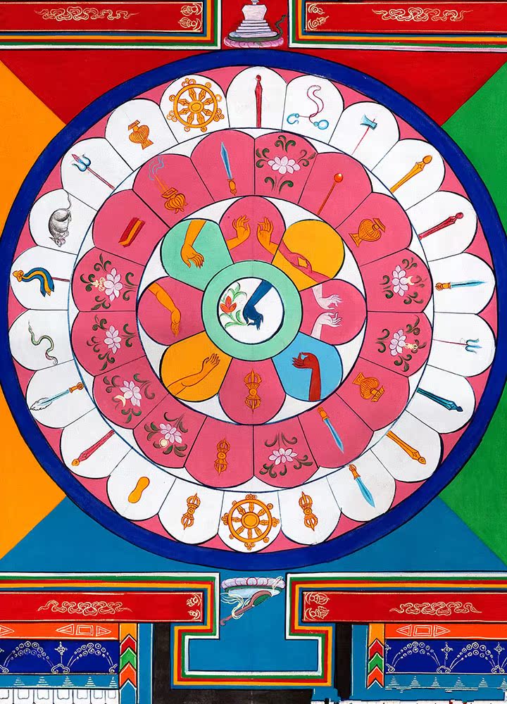 唐卡的裝裱款式有很多種,我們選用了最為傳統的一種,這種裝裱方式多為寺廟使用,代表的意義也很殊勝。