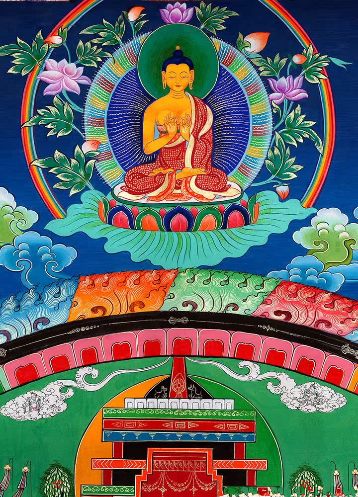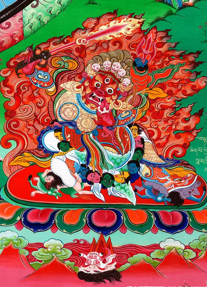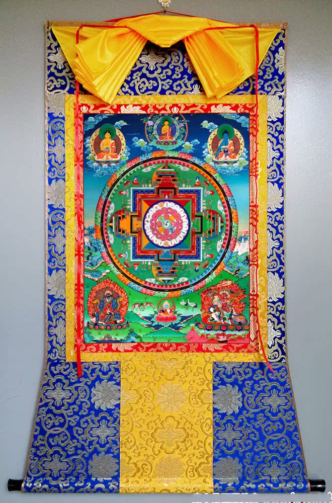 因是佛教圣相,所以我們選用的裝裱材料均是現在能有的最好的裝裱材料,正面選用定制的高檔棉織金絲錦緞很多仿制的是化纖材料,織繡藏傳佛教的富貴蓮花圖案,背面使用加厚仿真絲黃色綢緞布,手工精細裝裱而成,帶掛軸,照面,可直接懸掛到墻上。