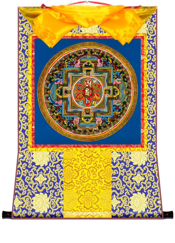 因是佛教圣相,所以我們選用的裝裱材料均是現在能有的最好的裝裱材料,正面選用定制的高檔棉織金絲錦緞很多仿制的是化纖材料,織繡藏傳佛教的富貴蓮花圖案,背面使用加厚仿真絲黃色綢緞布,手工精細裝裱而成,帶掛軸,照面,可直接懸掛到墻上。