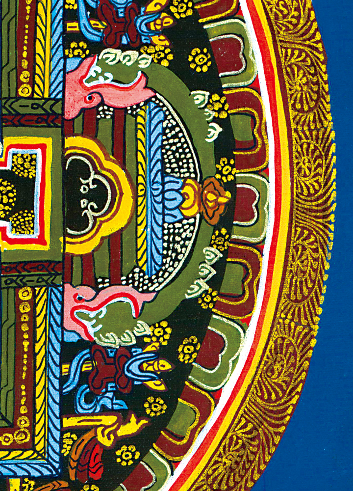 唐卡的裝裱款式有很多種,我們選用了最為傳統的一種,這種裝裱方式多為寺廟使用,代表的意義也很殊勝。