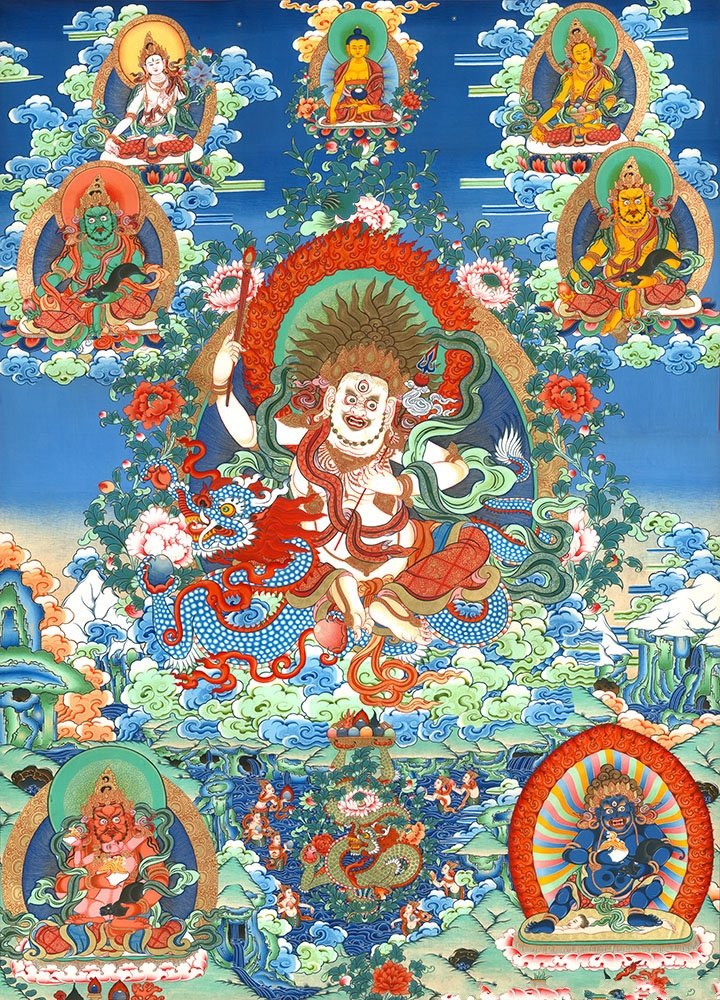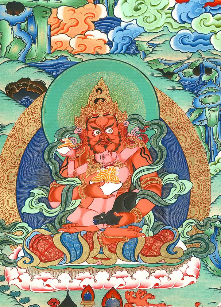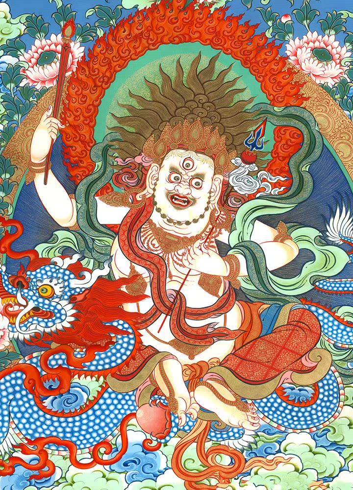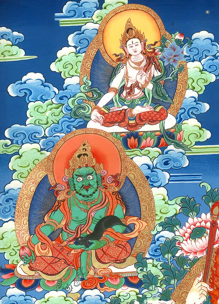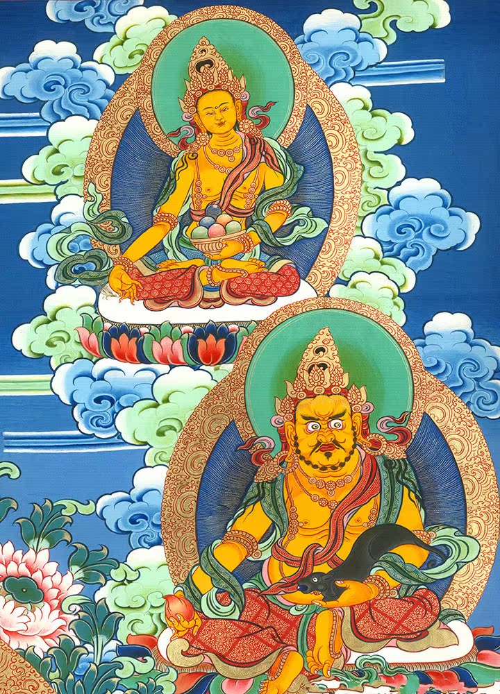 因是佛教圣相,所以我們選用的裝裱材料均是現在能有的最好的裝裱材料,正面選用定制的高檔棉織金絲錦緞很多仿制的是化纖材料,織繡藏傳佛教的富貴蓮花圖案,背面使用加厚仿真絲黃色綢緞布,手工精細裝裱而成,帶掛軸,照面,可直接懸掛到墻上。