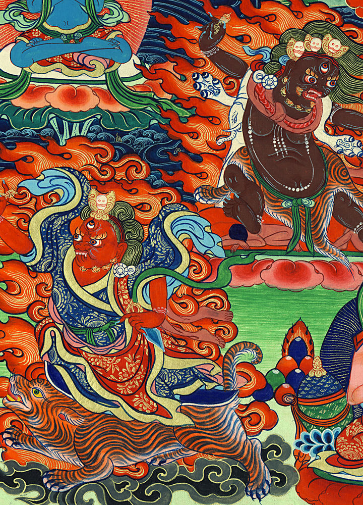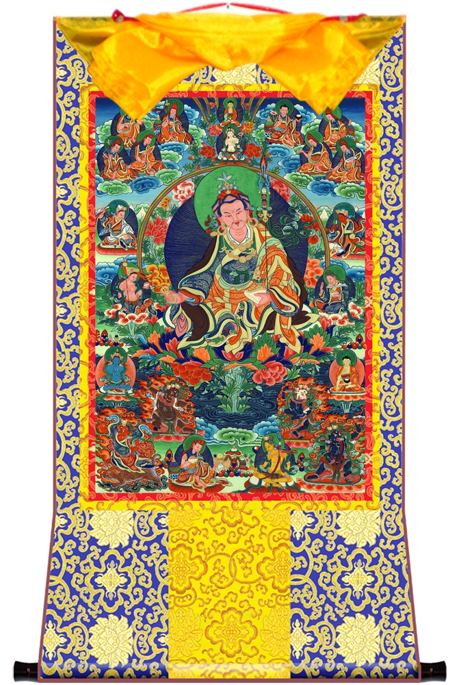 因是佛教圣相,所以我們選用的裝裱材料均是現在能有的最好的裝裱材料,正面選用定制的高檔棉織金絲錦緞很多仿制的是化纖材料,織繡藏傳佛教的富貴蓮花圖案,背面使用加厚仿真絲黃色綢緞布,手工精細裝裱而成,帶掛軸,照面,可直接懸掛到墻上。