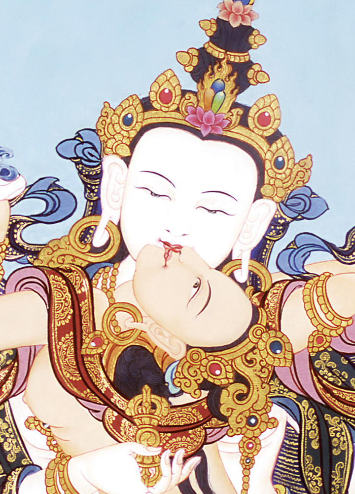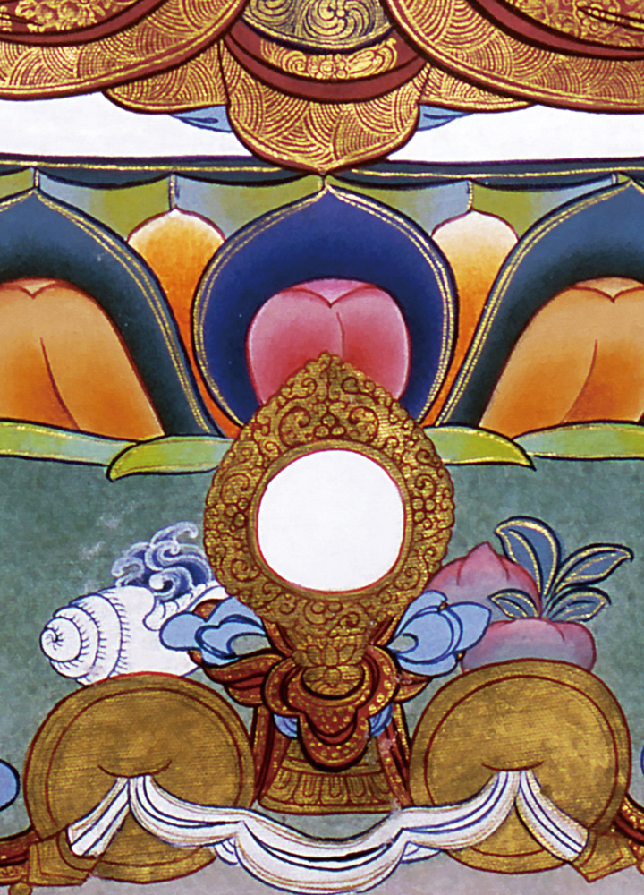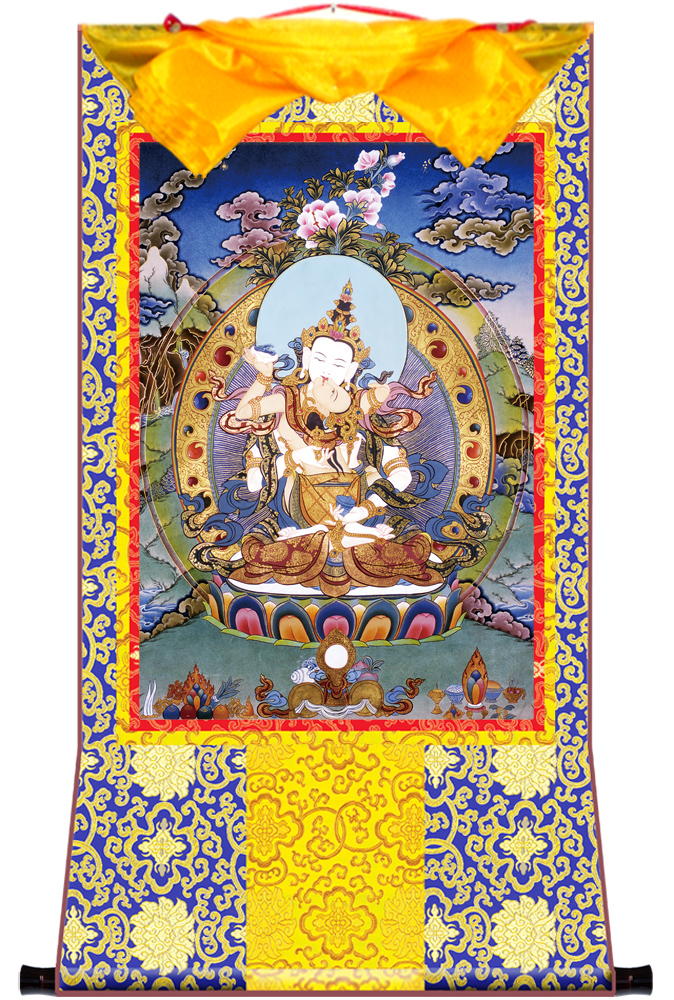 因是佛教圣相,所以我們選用的裝裱材料均是現在能有的最好的裝裱材料,正面選用定制的高檔棉織金絲錦緞很多仿制的是化纖材料,織繡藏傳佛教的富貴蓮花圖案,背面使用加厚仿真絲黃色綢緞布,手工精細裝裱而成,帶掛軸,照面,可直接懸掛到墻上。