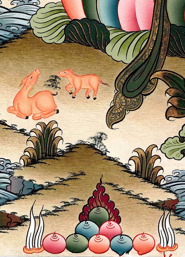 唐卡的裝裱款式有很多種,我們選用了最為傳統的一種,這種裝裱方式多為寺廟使用,代表的意義也很殊勝。