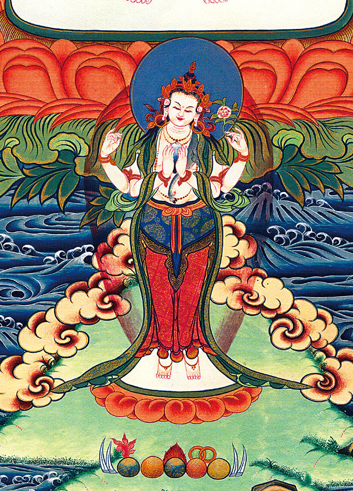 因是佛教圣相,所以我們選用的裝裱材料均是現在能有的最好的裝裱材料,正面選用定制的高檔棉織金絲錦緞很多仿制的是化纖材料,織繡藏傳佛教的富貴蓮花圖案,背面使用加厚仿真絲黃色綢緞布,手工精細裝裱而成,帶掛軸,照面,可直接懸掛到墻上。