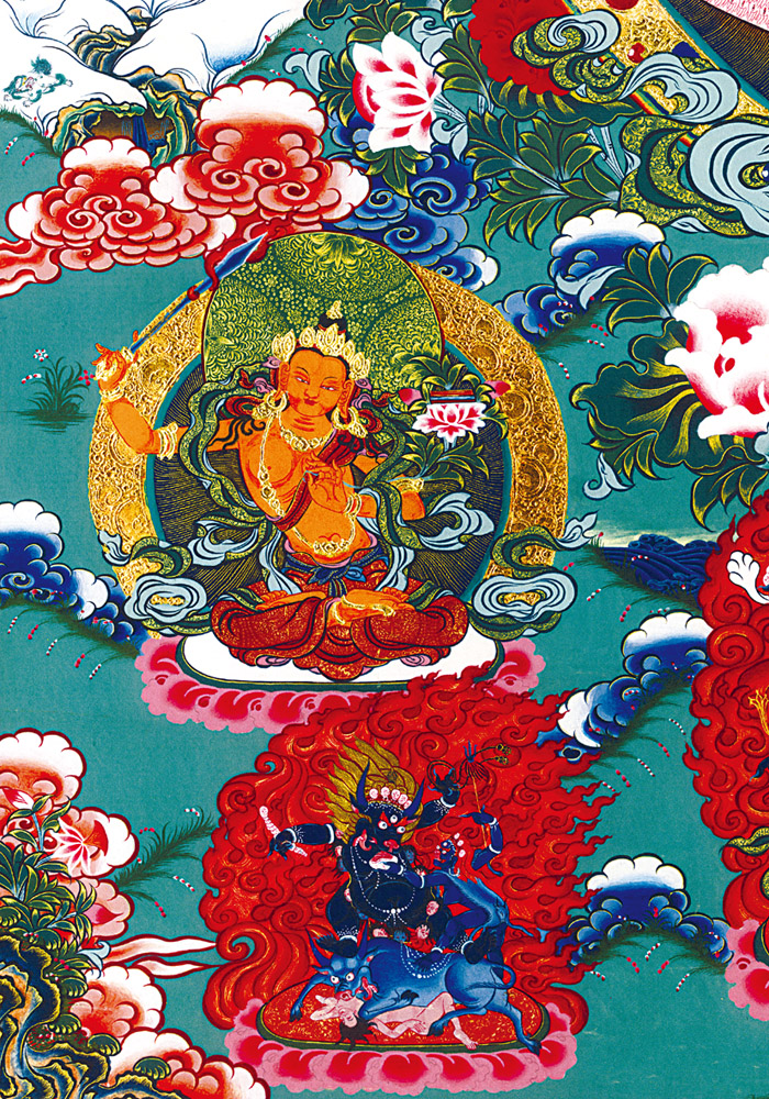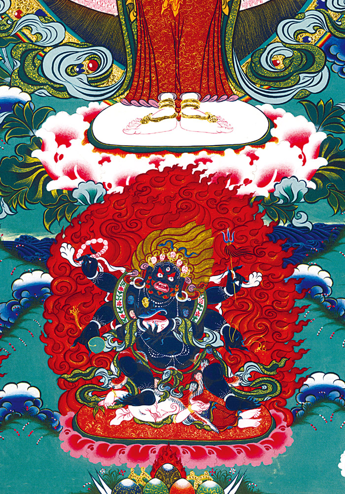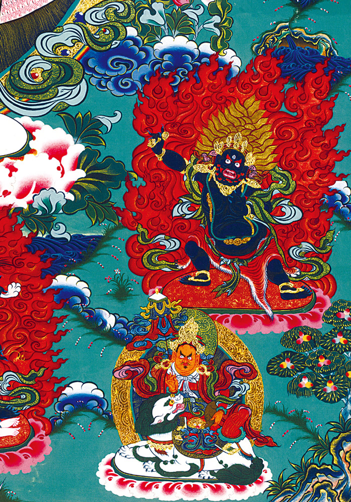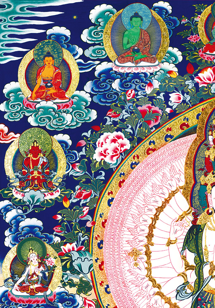 因是佛教圣相,所以我們選用的裝裱材料均是現在能有的最好的裝裱材料,正面選用定制的高檔棉織金絲錦緞很多仿制的是化纖材料,織繡藏傳佛教的富貴蓮花圖案,背面使用加厚仿真絲黃色綢緞布,手工精細裝裱而成,帶掛軸,照面,可直接懸掛到墻上。