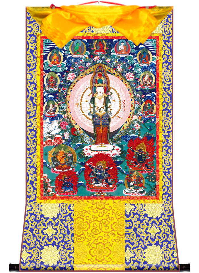 | 本公司大部分商品6一10天到貨。不接急單。急單的客戶請不要下單。感謝諒解與合作! 訂做如意惺特價/清宮御用錦緞藏傳密宗印刷畫像/B款唐卡千手觀音 訂做唐卡需要10天的貨期,付款后10天左右,如果特別趕的師兄請慎重拍!我們首先要保證質量才能!敬請諒解! 細節圖片展示