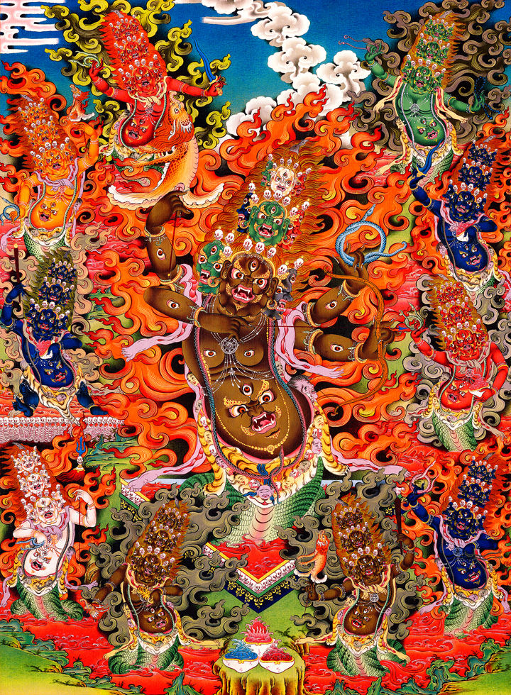 | 本公司大部分商品6一10天到貨。不接急單。急單的客戶請不要下單。感謝諒解與合作! 訂做如意惺特價/清宮御用錦緞精品佛像/B款大圓喇呼啦護法唐卡 訂做唐卡需要10天的貨期,付款后10天左右,如果特別趕的師兄請慎重拍!我們首先要保證質量才能!敬請諒解! 細節圖片展示
