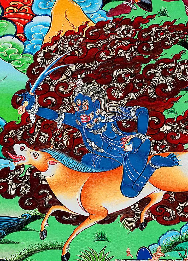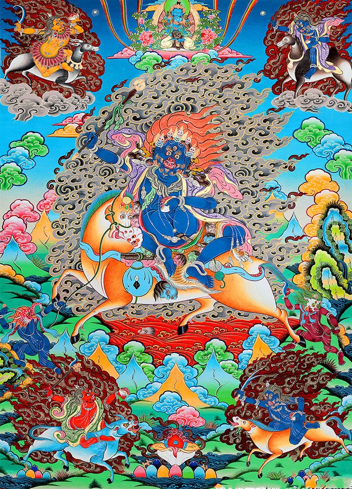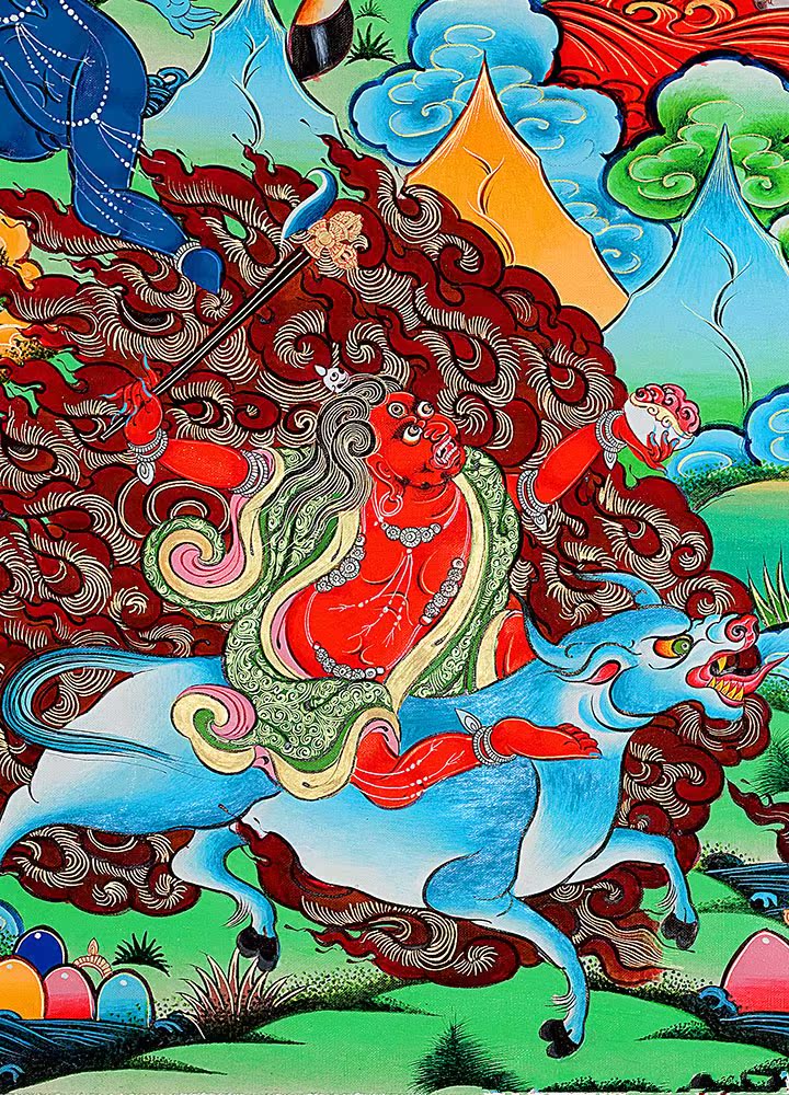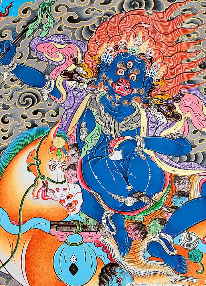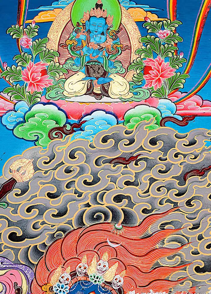 因是佛教圣相,所以我們選用的裝裱材料均是現在能有的最好的裝裱材料,正面選用定制的高檔棉織金絲錦緞很多仿制的是化纖材料,織繡藏傳佛教的富貴蓮花圖案,背面使用加厚仿真絲黃色綢緞布,手工精細裝裱而成,帶掛軸,照面,可直接懸掛到墻上。