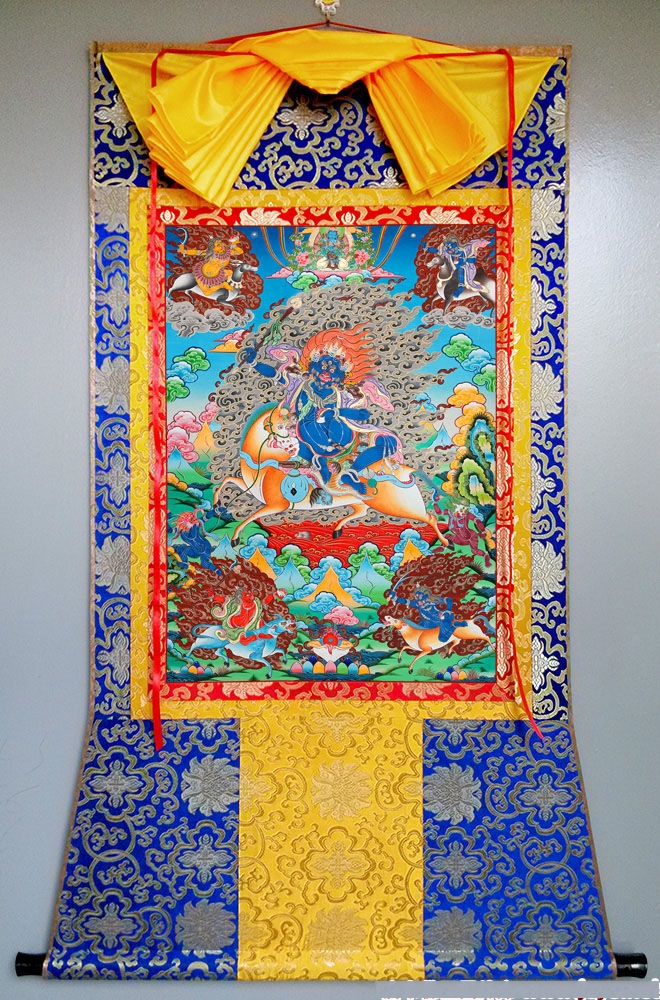 唐卡的裝裱款式有很多種,我們選用了最為傳統的一種,這種裝裱方式多為寺廟使用,代表的意義也很殊勝。