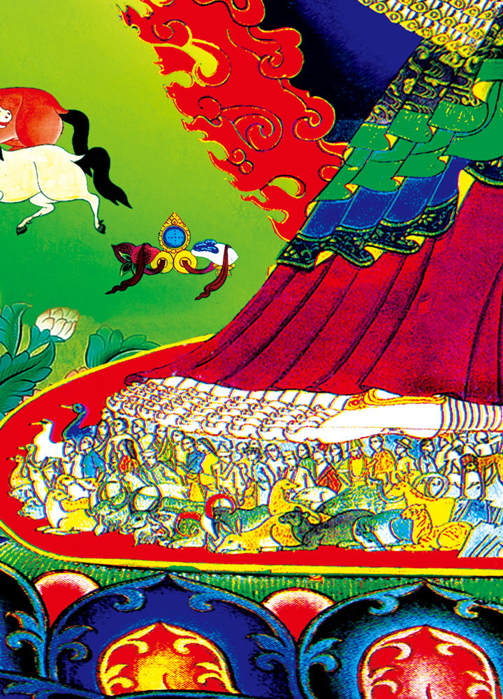 唐卡的裝裱款式有很多種,我們選用了最為傳統的一種,這種裝裱方式多為寺廟使用,代表的意義也很殊勝。