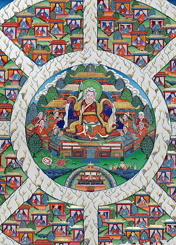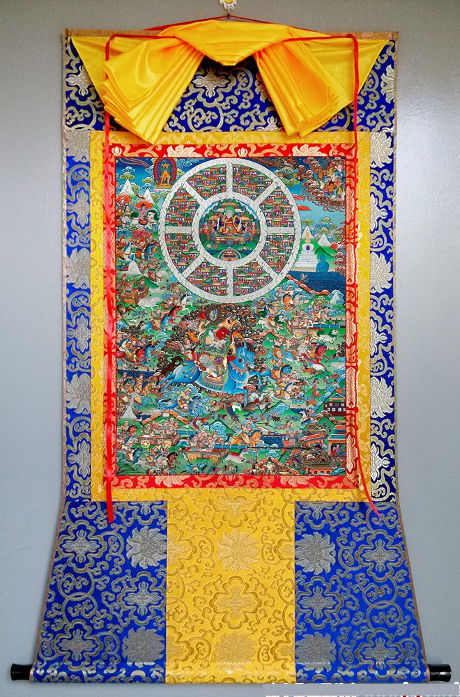 唐卡的裝裱款式有很多種,我們選用了最為傳統的一種,這種裝裱方式多為寺廟使用,代表的意義也很殊勝。