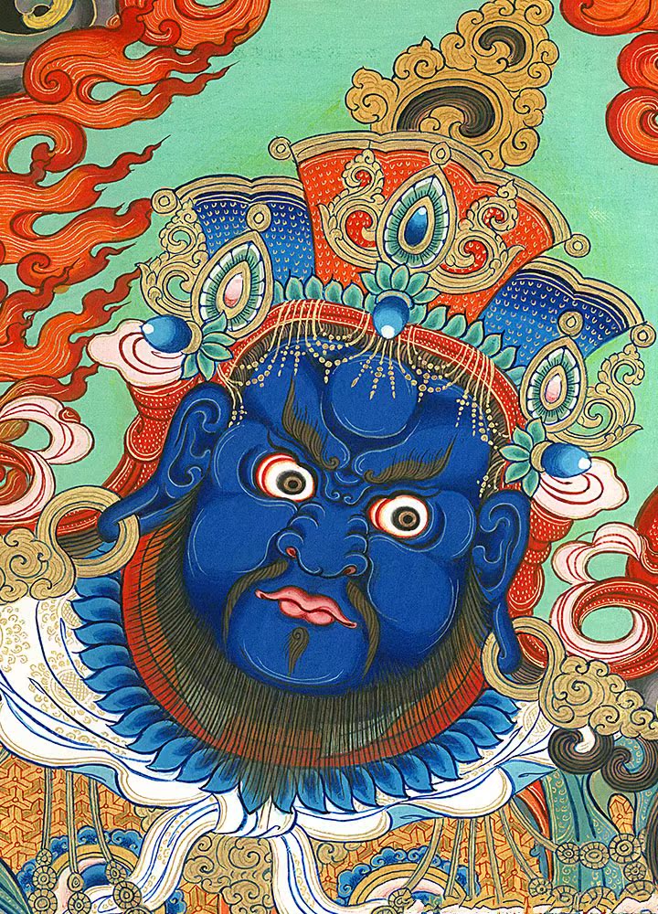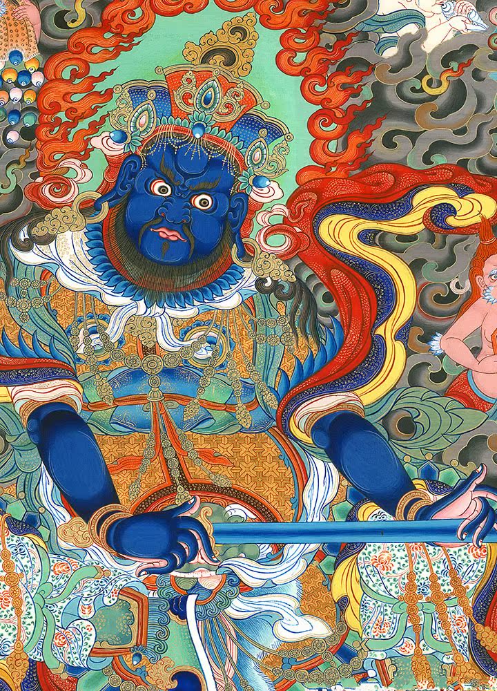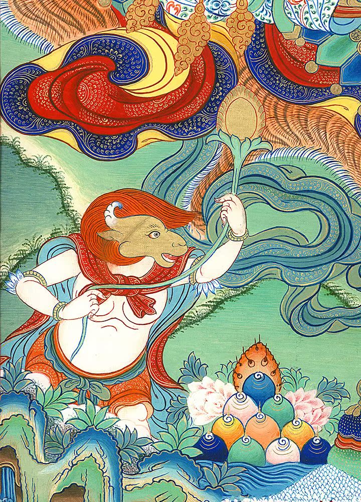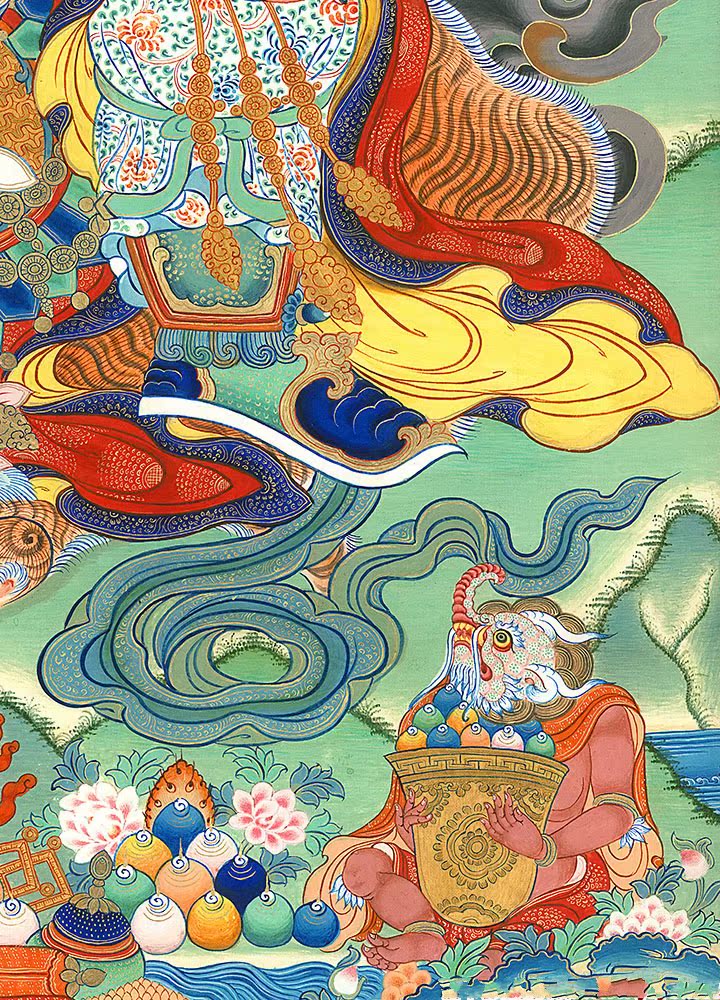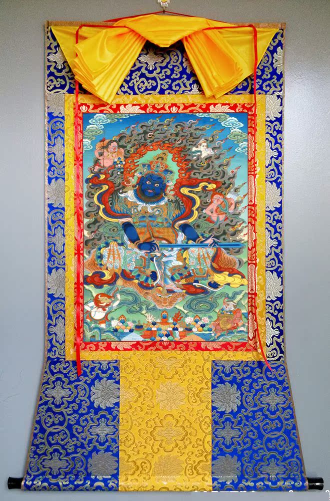 因是佛教圣相,所以我們選用的裝裱材料均是現在能有的最好的裝裱材料,正面選用定制的高檔棉織金絲錦緞很多仿制的是化纖材料,織繡藏傳佛教的富貴蓮花圖案,背面使用加厚仿真絲黃色綢緞布,手工精細裝裱而成,帶掛軸,照面,可直接懸掛到墻上。